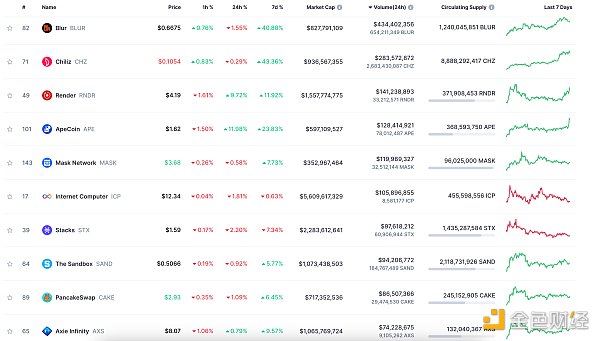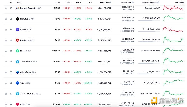 24小时NFT交易量、交易量前十项目 数据来源:Coinmarketcap