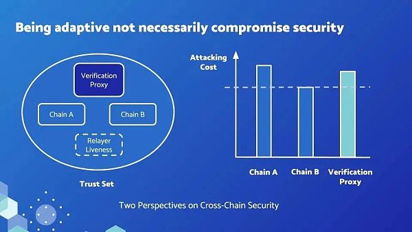 只要跨链双方有一条链的攻击成本/ Attacking Cost 低于公链 ICP,验证代理的引入就不会因为信任集合/ Trust Set 扩大而损害安全性。相比多签或者其他各种外部验证的跨链桥,安全等级都高得多。