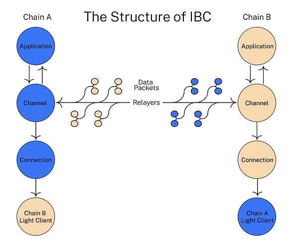简单说,就是 IBC 协议首先建立两个区块链之间的安全通道,然后传递数据包/ Data Packets,轻客户端验证对方区块链的共识信息,保证转移的一致性和安全性。所以,只要通讯层建立起来,整个 IBC 的跨链就是安全的。