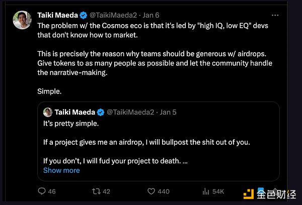我对 Cosmos 社区的一大批评是,他们真的很糟糕,无法向加密货币/普通人社区传达他们的价值主张。他们生活在自己的泡沫中,结果代币价格和社区都受到了影响。