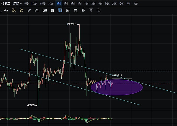大饼。午夜再次回踩42200附近止泻修补,昨日大框架反复在42800-42500附近徘徊不止,空间上比以太而言愈发收窄。目前小时图来看,价格通道持续收口走平,昨日多次阴阳转换无法给到实质突破,市场资金分叉情绪让人堪忧,短期附图依旧偏于修补,本周重点下方需关注41000乃至4万关口的阶段防守,操作上李隆建议小幅反弹,大胆空进去即可,进场切记做好分批风控计划。
