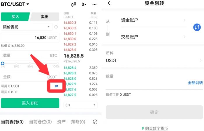 打开App,【资产】—【资金划转】—选择币种,以【USDT】为例—【资金账户】—【交易账户】—输入划转【数量】—【确定】。