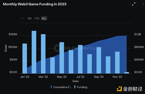 区块链游戏在2023年仍未迎来爆发,但由于良好的数据和承载大量用户的标的属性,链游依旧是有巨大潜力的优质赛道。过去一年,游戏行业总共披露了 133 笔交易,筹集了 $1.18B 资金,游戏项目总数达到约 2,500 至 3,500 个。另外,根据Footprint的数据,2023年GameFi领域总的用户数达到3.4亿,总的交易量超多32亿美金,总转账次数高达74亿,游戏项目产生的链上交易量比 DeFi 协议平均多23倍。比如,由NEAR支持的Sweat Economy是全球使用最广泛的移动赚钱应用程序之一。过去30天,UAW104万。目前有超过 1.45 亿用户,在赚取加密货币的同时保持活跃和健康。