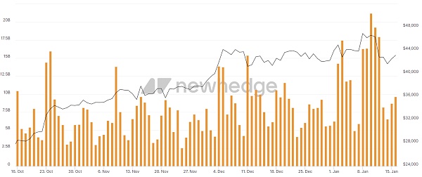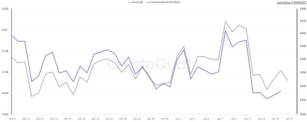 尽管周三比特币价格下跌,但未实现净利润在1月13日从一个月低点反弹。