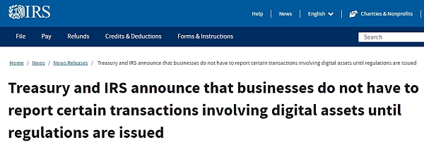 这一公告是对《基础设施投资和就业法案》(Infrastructure Investment and Jobs Act)修订的规则的过渡性指导,该法案要求从事贸易或商业的纳税人报告超过10000美元的现金收入,并将数字资产视为现金。