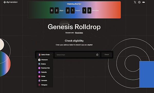 Dymension给所有Tia/Atom质押用户,空投DYM代币;