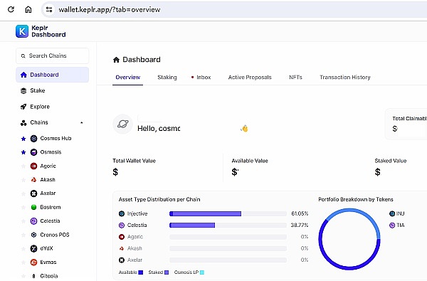 除了质押celestia网络,keplr钱包里还可以质押cosmos、osmosis等网络,而最近cosmos生态也颇高,或许也有机会。