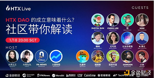 1月18日,火币HTX全球顾问委员会成员孙宇晨、亚洲货币香港最佳高管Chris Lee、 亦来云BeL2联合创始人韩峰、Nano Labs创始人孔剑平等数位行业重磅嘉宾以及PANews、火星财经等行业媒体做客火币HTX推特Space。本次Space以“HTX DAO的成立意味着什么”为题,全面解读DAO、HTX DAO的财富密码、以及HTX DAO带来的全新加密叙事。