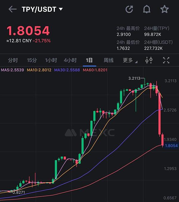 2月份开始,tpy这个资金庞氏大概率将开始瓦解,“买币-质押-币价上涨-复投”的螺旋式上升逻辑会因为大量抛压而终止,转而变成“解锁卖币-币价下跌-不再复投”的反向螺旋。
