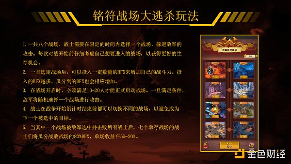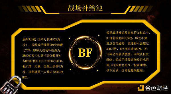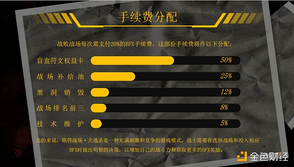 80%:战败战场80%的 BFX按照七个幸存战场各玩家投入BFX的比例分配奖励