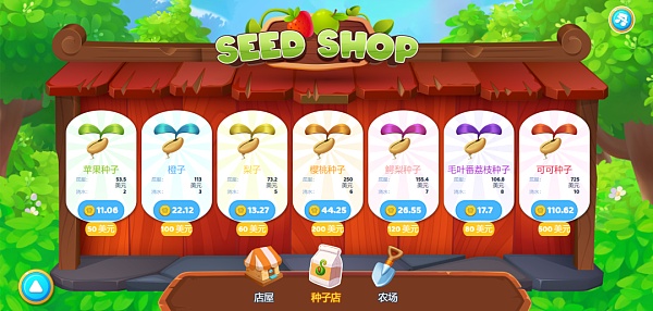1.种子店:出售不同经济价值和价格的种子的地方。玩家可以选择购买适合自己口袋的种子。当然,种子的经济价值越高,价格就越高,赚取的金额也越高,反之亦然。