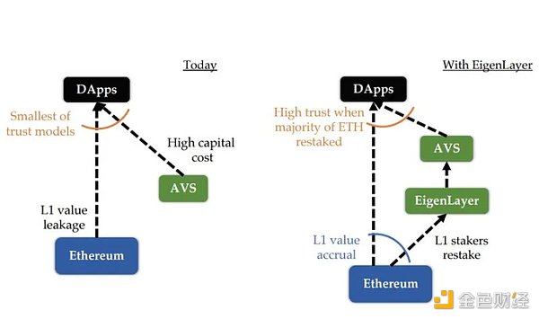 EigenLayer 正在“模块化”以太坊的去中心化信任,以便 AVS(actively validated services)可以利用它,而无需启动其验证者集,从而有效降低进入该市场的门槛。