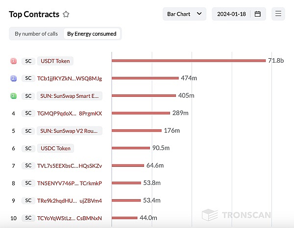 无论牛熊,稳定币在投资交易中的作用不言而喻,市场对USDT的需求即是对波场网络的需求。USDT需求越大,波场网络越活跃。根据TRONSCAN数据,USDT合约成为波场网络最大的能源消耗方。