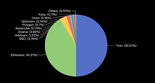 根据Defillama数据,TRC20-USDT占据USDT市场半壁江山。
