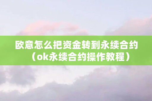 欧意怎么把资金转到永续合约(ok永续合约操作教程)