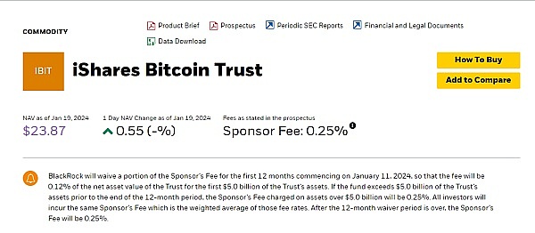 贝莱德的比特币ETF代码为IBIT。