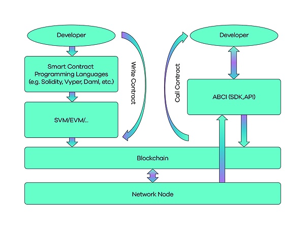 TVL排名前十的主流链中,有超过一半都兼容EVM。所谓的EVM兼容性,是指区块链具备编写、执行智能合约代码以及运行EVM的能力。这一特性使得开发人员能够轻松地在EVM兼容链上发布已有的智能合约,而无需对代码进行任何修改。由于EVM兼容链能够与以太坊网络集成,这为开发人员提供了一个便捷的平台,让他们能够在以太坊和EVM兼容网络上轻松开发和部署自己的去中心化应用。