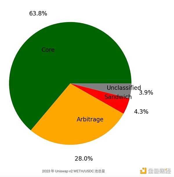 这些结果与 v3 矿池结果形成鲜明对比,后者的套利交易比例要高得多。见下文: