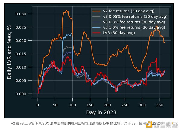 手续费收入几乎全年都超过理论LVR,平均每天约0.01%。