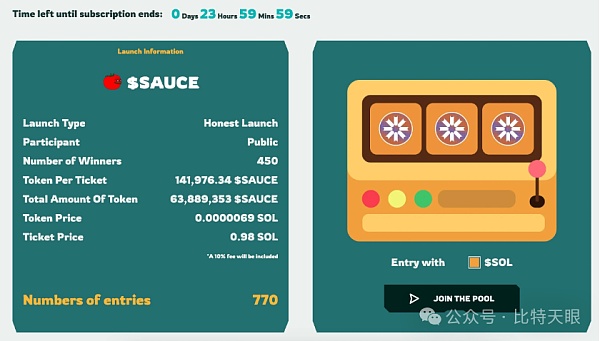 当前,SAUCE仍处于公售阶段,现已超额认购了170%。关于公售阶段(HonestPool)的具体参与规则如下:
