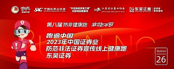 为进一步做好防范非法证券活动宣传工作,保护投资者合法权益,在中国证券业协会、中国证券监督管理委员会江苏监管局、江苏省证券业协会、中国田径协会等多家单位指导下,东吴证券于2023年10月21日正式启动"跑遍中国•2023年中国证券业防范非法证券宣传线上健康跑•东吴证券"第二十六站公益活动,活动历时21天,于2023年11月10日圆满收官。通过开展防范非法证券宣传活动,提高金融消费者防非反诈的意识和能力,保护投资者合法权益。