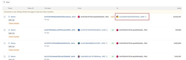 生态基金解锁5千万枚,其中一部分公开的用于各大交易所提供流动性,但有2580万manta经过多个钱包转账后在汇聚,在20日偷偷充值进入币安交易所。