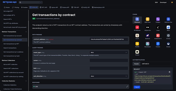 如何使用 NFTScan API 检索 NFT 合约地址下 Transactions 数据
