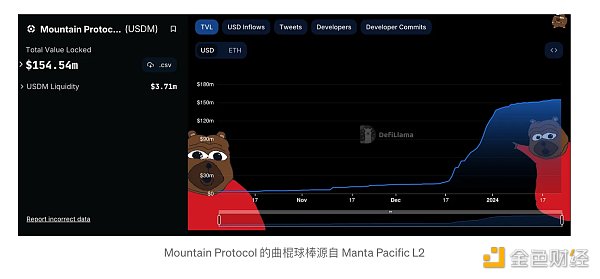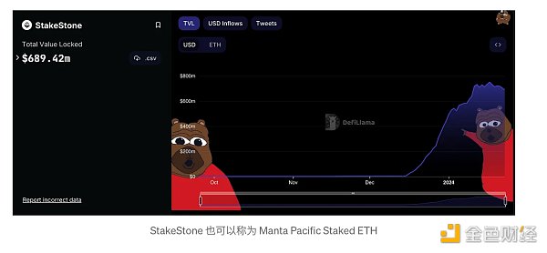 这些合作伙伴关系证明了他们对小型协议的扶持力度。Mountain Protocol 的 TVL 与 Manta 合作后增长了 10 倍,而 Stakestone 则从零开始迅速发展。