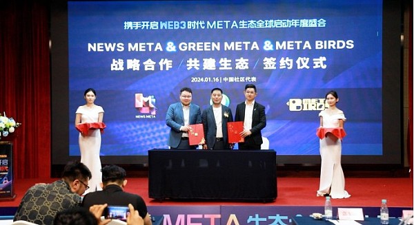 值得一提的是,在盛会上,News Meta、GREEN META.CCM与Meta Birds三方达成了历史性的签约仪式,为Meta全球生态发展奠定了更加坚实的基础。