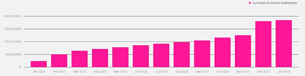 截至 2023 年 12 月,Covalent(CQT)在整个Web3生态中赋能了 2.4 亿个活跃地址。而这一数字仍在继续增长。这也表明了 Covalent(CQT)对各种区块链生态的影响力,以及对其实时可用和可持续的数据层愿景的落地能力。