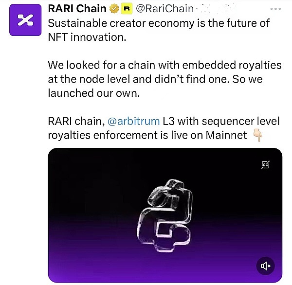 Rari Chain是一个基于Arbitrum的EVM等价链,专注于通过节点级别的版税嵌入机制来保护NFT版权。作为一条Layer 3链,它不仅增强了Arbitrum的扩展性,还为NFT生态系统提供了额外的功能。自2023年11月30日测试网推出以来,其吸引了约46,000个钱包地址参与,完成了超过251,000次交易。RARI Chain的内置版税功能,允许用户为每个NFT或整个系列定制版税比例。如今,Rarible正在努力将RARI Chain整合进其Rarible协议和Rarible X平台,进一步扩大Rari Chain的应用范围和影响力。
