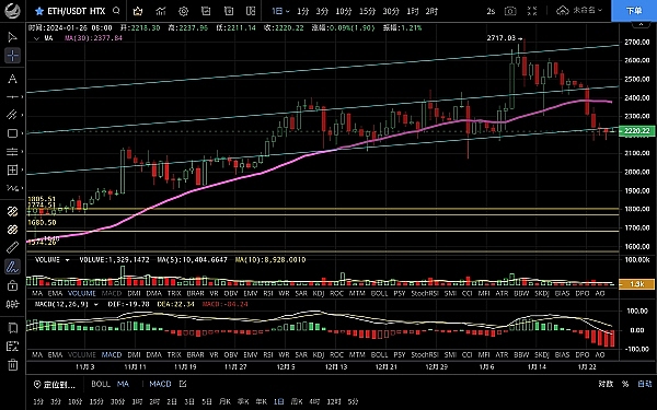 以太坊昨日白盘波动不大,晚间行情下跌至2171一线给到入场机会,随后开始反弹,走势如思路一致,恭喜跟上的朋友多单获利50点,目前币价在2221附近运行,四小时级别行情二次下探未破前低走出反弹但力度不大,高点逐步降低,macd多头运行双线金叉,整体围绕ma7附近上下震荡,走势没什么变化以震荡为主,日线级别实体没能跌破ma90均线,有阴转阳向上反弹,关注2250突破情况,不破则会继续震荡下行,近期若有大回调可以低多布局,作为优质币种未来一定不会差,思路建议回踩低多为主高空为辅,上方压制2250-2280,下方支撑2180-2150