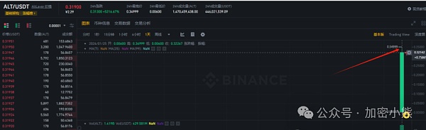 北京时间1月25日下午18:00币安正式上市 AltLayer(ALT),并开通 ALT/BTC、ALT/USDT、ALT/BNB、ALT/FDUSD和ALT/TRY交易市场,适用种子标签交易规则。