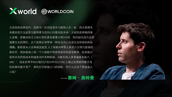 而Xworld的诞生,正是为了追寻赛姆·奥特曼打造Worldcoin数字帝国的步伐,以全球化的使命,全身心投入WLD生态,助力推动数字经济全球布道。
