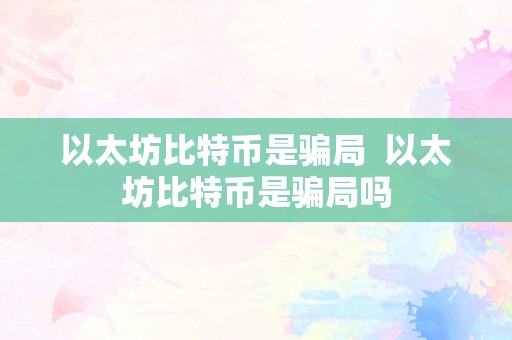 以太坊比特币是骗局 以太坊比特币是骗局吗