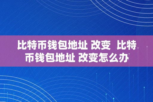 比特币钱包地址 改变 比特币钱包地址 改变怎么办