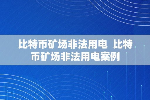 比特币矿场非法用电是指在比特币挖矿过程中,使用未经授权或非法手段获取电力资源,从而导致能源浪费和社会资源的滥用,这一现象在全球范围内愈发严重,给电力系统稳定运行和环境保护带来了巨大挑战,以下将通过几个相关词,深入探讨比特币矿场非法用电的案例、原因和影响。