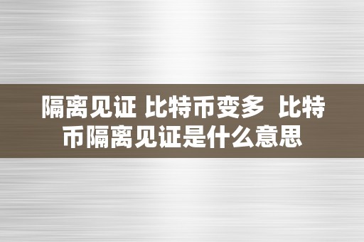 隔离见证 比特币变多 比特币隔离见证是什么意思