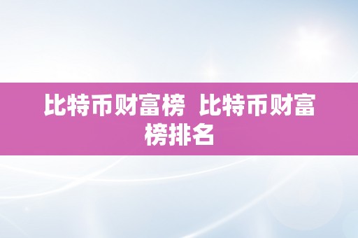 比特币财富榜排名是根据比特币持有量来确定的,持有更多比特币的人在榜单上排名更高,比特币财富榜排名并不仅仅取决于持有量,还受到比特币价格的波动和投资者的交易行为的影响,比特币市场的波动性使得排名可能会发生变化,因为比特币的价格会随着市场供需和投资者情绪的变化而波动,比特币财富榜排名并不是一个静态的列表,而是一个动态的排行榜。
