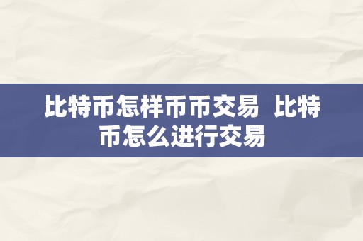 比特币怎样币币交易 比特币怎么进行交易