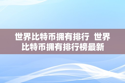 比特币(Bitcoin)是一种基于区块链技术的数字货币,自2009年问世以来,逐渐成为全球范围内最受关注和使用的加密货币之一,随着比特币的价值不断攀升,越来越多的人开始关注世界各地的比特币拥有者排行榜,以了解谁拥有最多的比特币,谁在比特币领域处于领先地位,本文将详细描述世界比特币拥有排行及最新的比特币拥有排行榜。