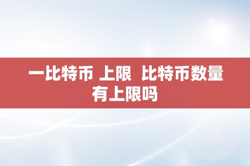 一比特币 上限 比特币数量有上限吗