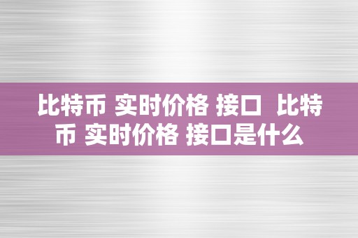 比特币 实时价格 接口 比特币 实时价格 接口是什么