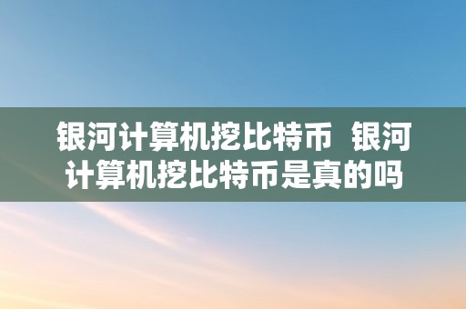 银河计算机挖比特币及银河计算机挖比特币是真的吗