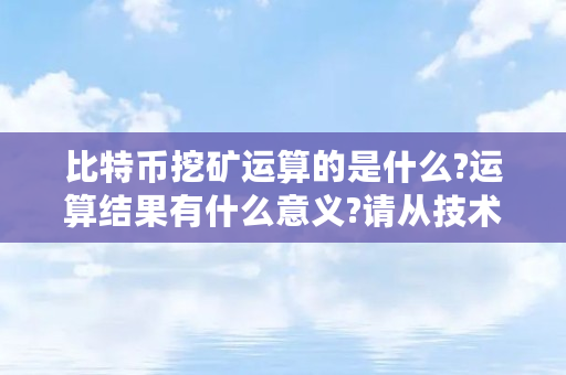 比特币挖矿运算的是什么?运算结果有什么意义?请从技术方面释疑,不要简单定语(比特币挖矿收益计算器数据)