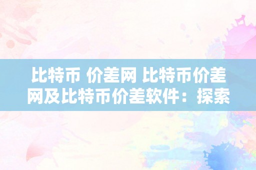 比特币 价差网 比特币价差网及比特币价差软件:探索数字货币交易中的利润机会和风险 比特币价差软件