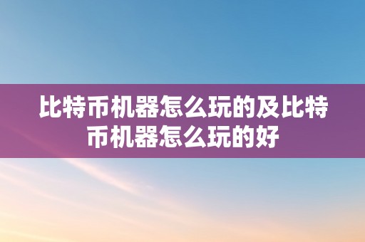 比特币机器怎么玩的及比特币机器怎么玩的好
