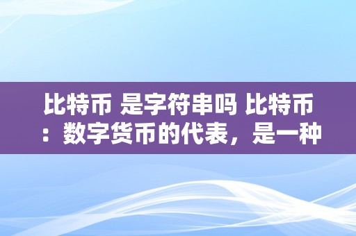 比特币 是字符串吗 比特币:数字货币的代表,是一种虚拟的加密货币 比特币是字符串吗