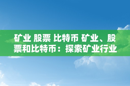 矿业 股票 比特币 矿业、股票和比特币:探索矿业行业与比特币对股票市场的影响 矿业 股票 比特币行情