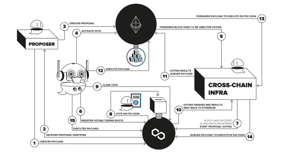 提案投票:投票者在大多数情况下不会在以太坊上进行投票,而是会在其他网络中,例如Polygon、Avalanche、Arbitrum或Optimism,未来会开放更多网络。补充:一个提案的投票只会在一个网络中进行,而不是在多个网络中同时进行,提案者可以根据偏好或其他因素选择具体在哪个网络进行投票。